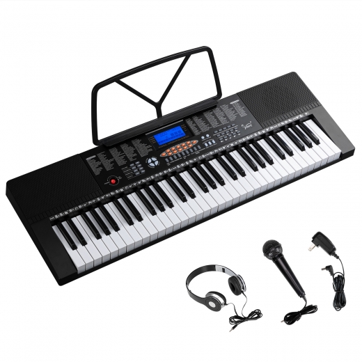 The Glarry 61-Key Portable Electronic Piano Keyboard with an LCD Screen, Microphone, Headphones, 3 Teaching Modes, and Built-In Speakers is the perfect instrument for beginners.