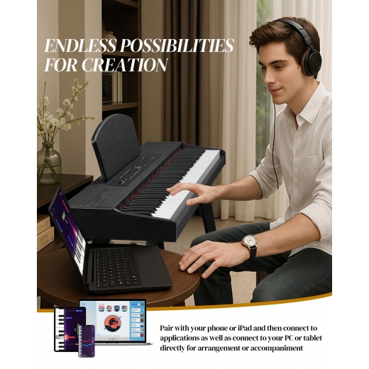 【DUAL-MODE CONNECTIVITY, ENJOY LIMITLESS POSSIBILITIES】The multimedia external function interface is comprehensive, and it is compatible with almost all existing devices. The wireless connection allows you to connect to musical apps for practice or performance. Also, this keyboard piano supports the MIDI function, which can easily create music